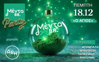 Μέντα Πάρτι Χριστουγέννων! Ο Μέντα 88 σας προσκαλεί στο πιο όμορφο ραδιοφωνικό πάρτι της χρονιάς! Την Πέμπτη 18 Δεκεμβρίου, στις 9 και μισή το βράδυ, στον Άγιο στο Κολωνάκι. Σε ρόλο DJ η Ανδριάνα Μπάμπαλη, η [...]